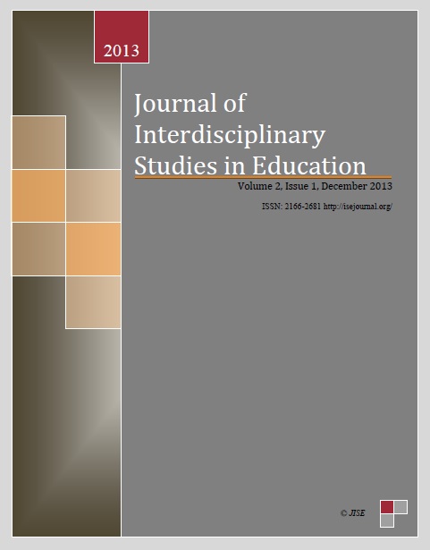 Vol. 2 No. 1 (2013)Journal of Interdisciplinary Studies in Education is aimed at those in the academic world who are dedicated to advancing the field of education through their research. JISE provides a range of articles that speak to the major issues in education across all content areas and disciplines. The Journal is a peer-reviewed through a blind review process that utilizes a national and international editorial board and peer reviewers. JISE aspires to advance research in the field of education through a collection of quality, relevant, and advanced interdisciplinary articles in the field of education.