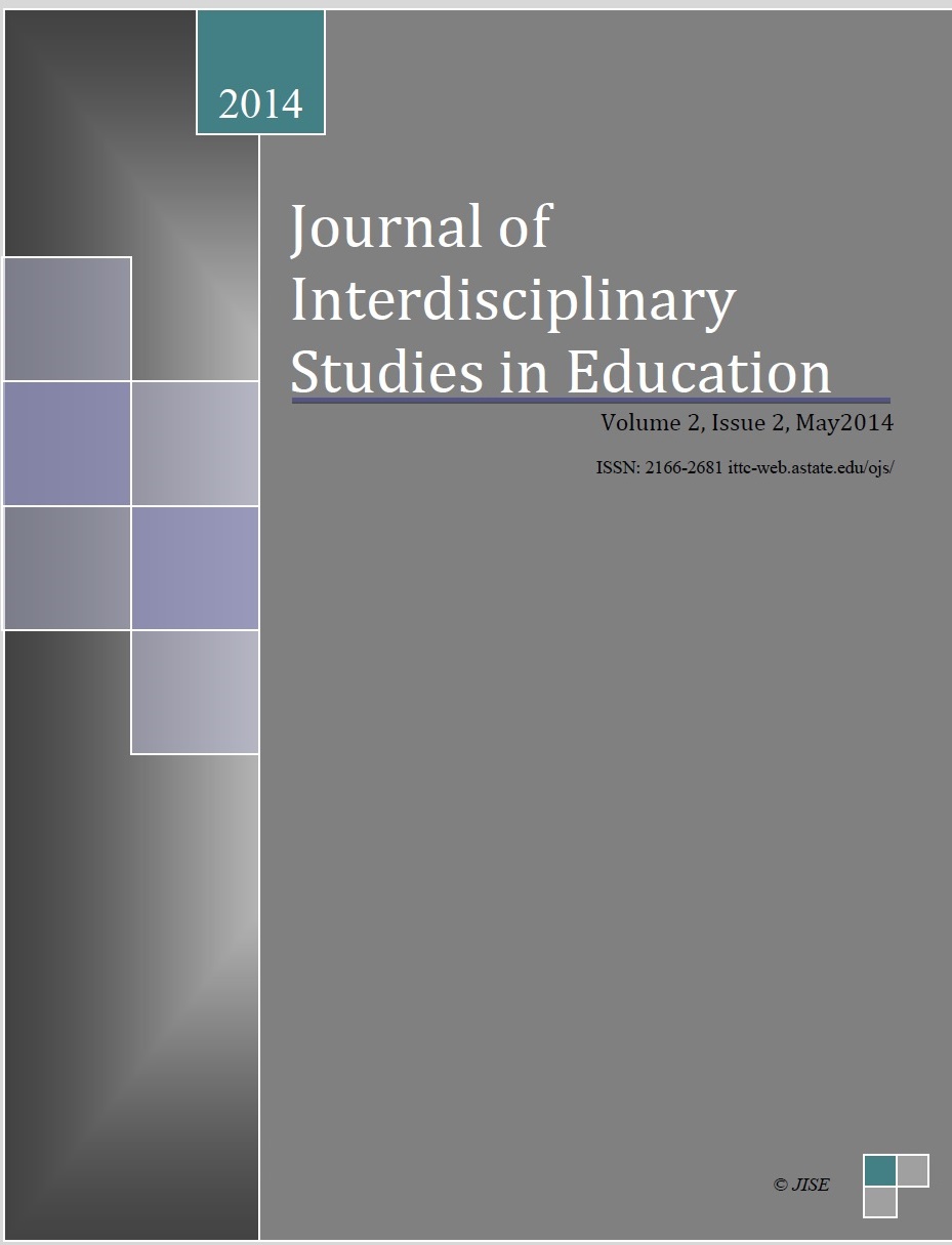 Vol. 2 No. 2 (2014)Journal of Interdisciplinary Studies in Education is aimed at those in the academic world who are dedicated to advancing the field of education through their research. JISE provides a range of articles that speak to the major issues in education across all content areas and disciplines. The Journal is a peer-reviewed through a blind review process that utilizes a national and international editorial board and peer reviewers. JISE aspires to advance research in the field of education through a collection of quality, relevant, and advanced interdisciplinary articles in the field of education.