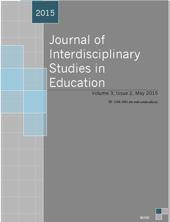 Vol. 3 No. 2 (2015)Journal of Interdisciplinary Studies in Education is aimed at those in the academic world who are dedicated to advancing the field of education through their research. JISE provides a range of articles that speak to the major issues in education across all content areas and disciplines. The Journal is a peer-reviewed through a blind review process that utilizes a national and international editorial board and peer reviewers. JISE aspires to advance research in the field of education through a collection of quality, relevant, and advanced interdisciplinary articles in the field of education.